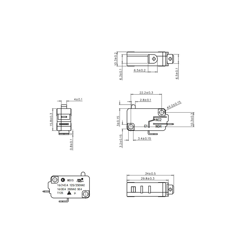 MS15-3A1 مفتاح ميكرو مناسب لأنواع مختلفة من الطاقة المنخفضة