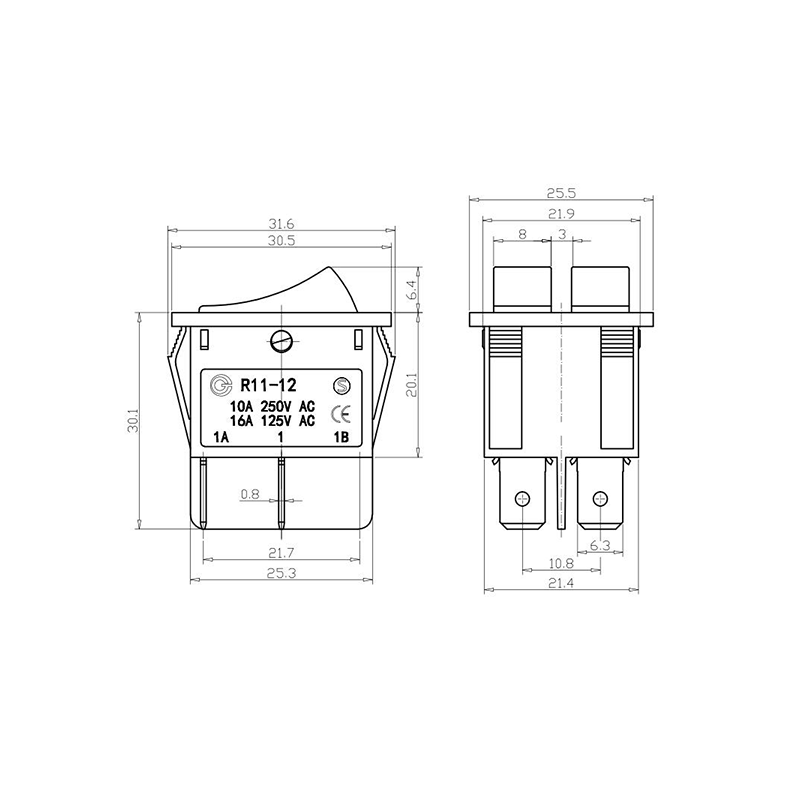 R11-12 مفتاح روكر ثنائي القطب