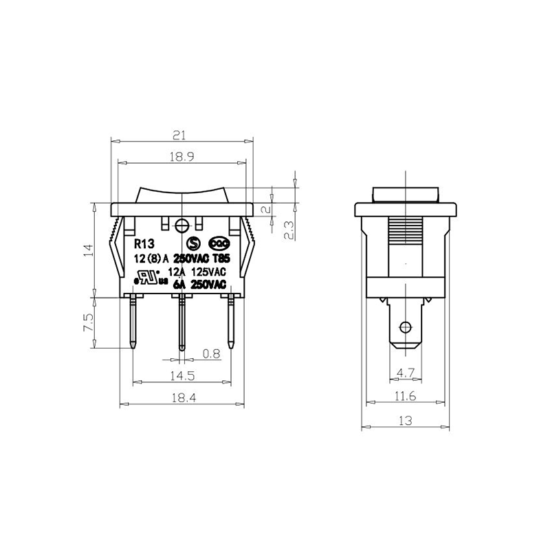من حيث الوظائف، توفر سلسلة R13-13 تخطيطات طرفية ثنائية وثلاثية الدبابيس، وتدعم تكوينات الدائرة SPST (رمي أحادي القطب) وSPDT (رمي أحادي القطب مزدوج) لاستيعاب متطلبات التصميم الكهربائي المختلفة. إن العلامات الواضحة "0/1" الموجودة على المحرك تجعل تشغيله سهلاً، بينما تتيح خيارات الألوان بالأبيض والأسود الاتساق البصري مع تصميم المنتج النهائي.