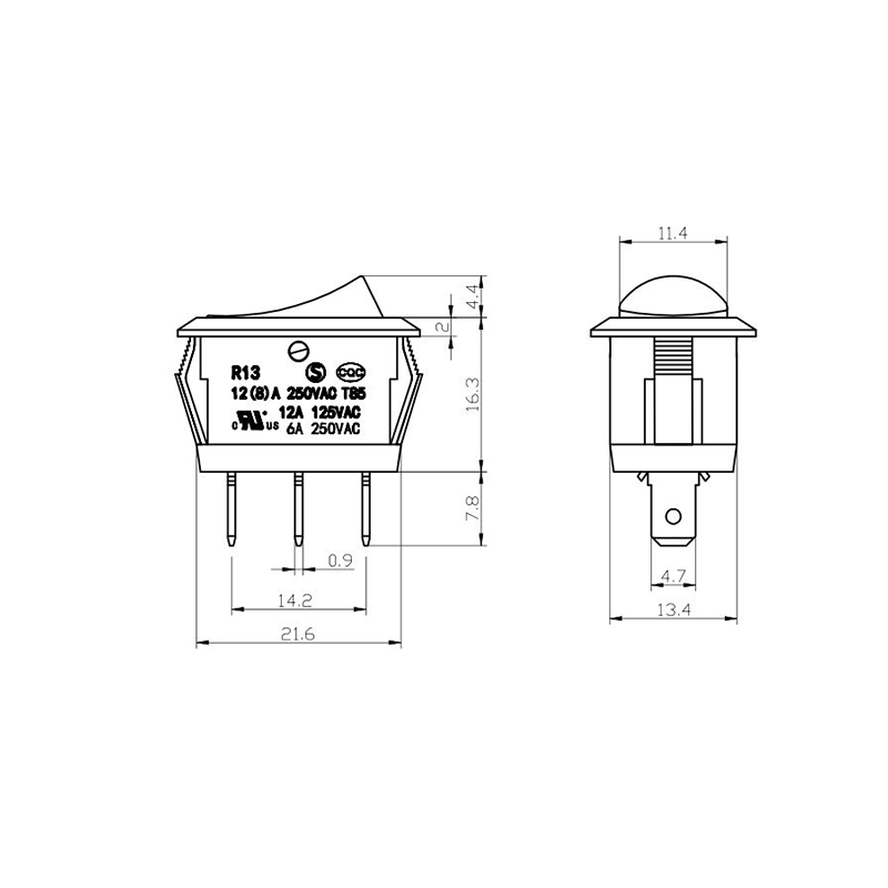 تم تصميم R13-51 مفتاح روكر بثلاثة أطراف بغلاف دائري مدمج، مثالي للاستخدام في التطبيقات ذات المساحة المحدودة مثل الأجهزة الإلكترونية ولوحات التحكم. يتميز تصميمه بغطاء مشغل أحمر مع علامات "| / O" واضحة، مما يسمح بتشغيل/إيقاف التشغيل وتحديد الحالة بشكل بديهي. يتيح تصميم التثبيت المدمج تركيب اللوحة بشكل آمن وسهل.